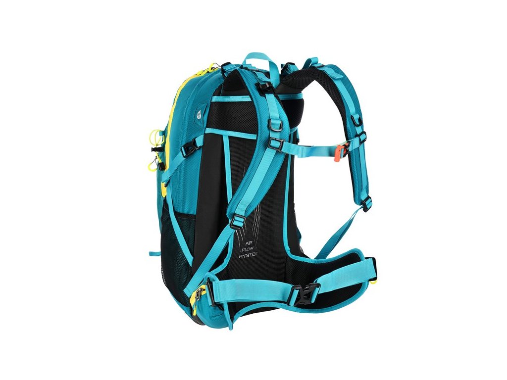 Hlavní komora na dvoucestný zip je opatřena kapsou na hydrovak, který lze zavěsit na řemínek se suchým zipem. Druhá, menší komora je také opatřena dvoucestným zipem a uvnitř se nachází 2 síťované kapsy na drobnosti. Čelní panel tvoří rozměrnou kapsu, do které se přistupuje 15 cm dlouhým, jednocestným zipem z pravé strany. Po stranách batohu jsou síťované kapsy s gumičkou v lemu, nad kapsami se nachází délkově nastavitelné popruhy s přezkou, pod které lze umístit například vyšší láhev. Na bederním pásu jsou 2 kapsy na zip, do kterých se vejdou například klíče, nebo multitool. Z čela batohu se nachází 2 gumová poutka a 2 smyčky pro přenášení turistických holí.