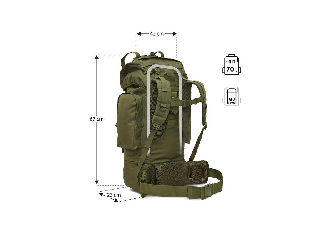 Armádní batoh NC3901 Eagle od společnosti NILS Camp je volbou pro každého, kdo si cení spolehlivosti, funkčnosti a připravenosti do jakýchkoli podmínek. S úctyhodným objemem 70 litrů se do něj snadno vejde veškeré vybavení potřebné během několikadenní expedice - od oblečení a jídla až po stan a karimatku. Je ideální volbou pro milovníky trekkingu, bushcraftu a survivalu, stejně jako pro ty, kteří se chystají na expedice v náročném horském nebo lesním terénu.