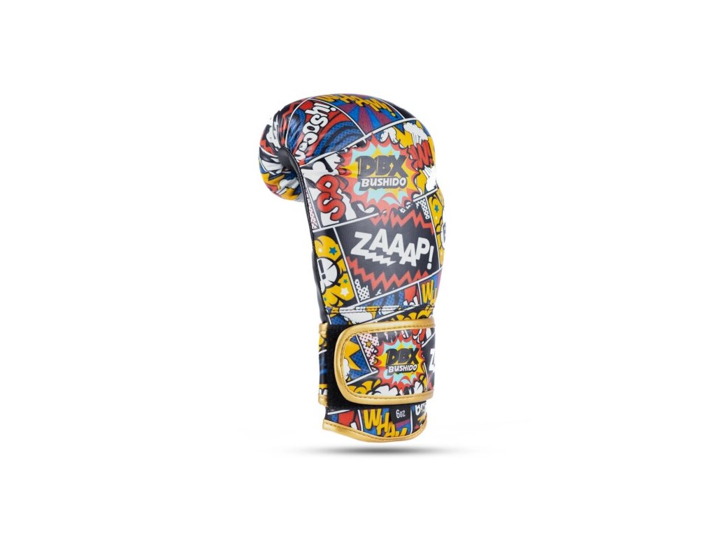 Bezpečnost, pohodlí a odolnost - rukavice DBX BUSHIDO ARB-Kids byly vyvinuty speciálně pro nejmladší adepty bojových sportů. Díky barevnému provedení v komiksovém stylu trénují děti s ještě větší radostí a profesionální konstrukce jim poskytuje maximální ochranu. Díky palci spojenému s rukavicí, široké manžetě na suchý zip pro stabilizaci zápěstí a ruční šití jsou ideální volbou pro mladé bojovníky, kteří chtějí rozvíjet své dovednosti v boxu, kickboxu nebo Muay Thai.