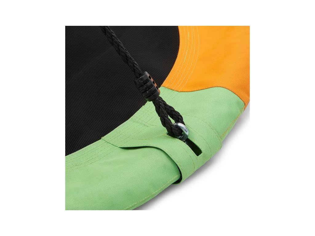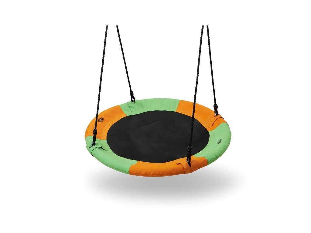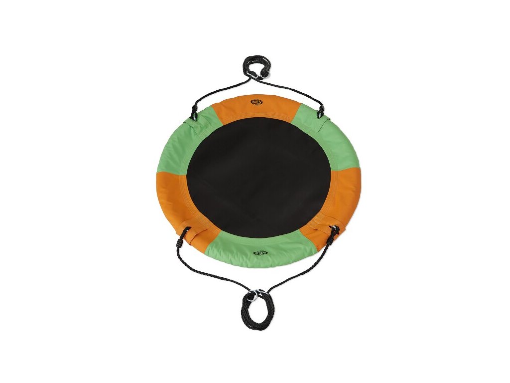 Kruhová houpačka NILS Camp NB5003 je vhodná pro použití venku. Hnízdo je vhodné jak pro houpání, tak pro odpočinek a díky průměru 90 cm a nosnosti až 150 kg se do něj pohodlně vejdou dvě děti. Houpačku drží 4 PE lana o délce 180 cm. Samotná konstrukce hnízda je tvořena 25 mm širokým, ocelovým kruhem, který je chráněn vrstvou mirelonu a přes něj je natažena polyesterová tkanina Oxford 600D.