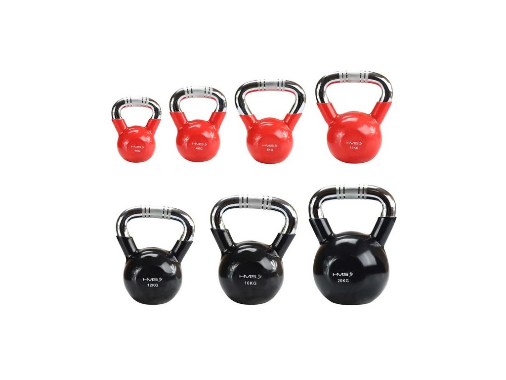 Kettlebell HMS KTC je vyroben z vysoce kvalitní litiny pokryté vinylem a je vybaven chromovaným úchytem.
