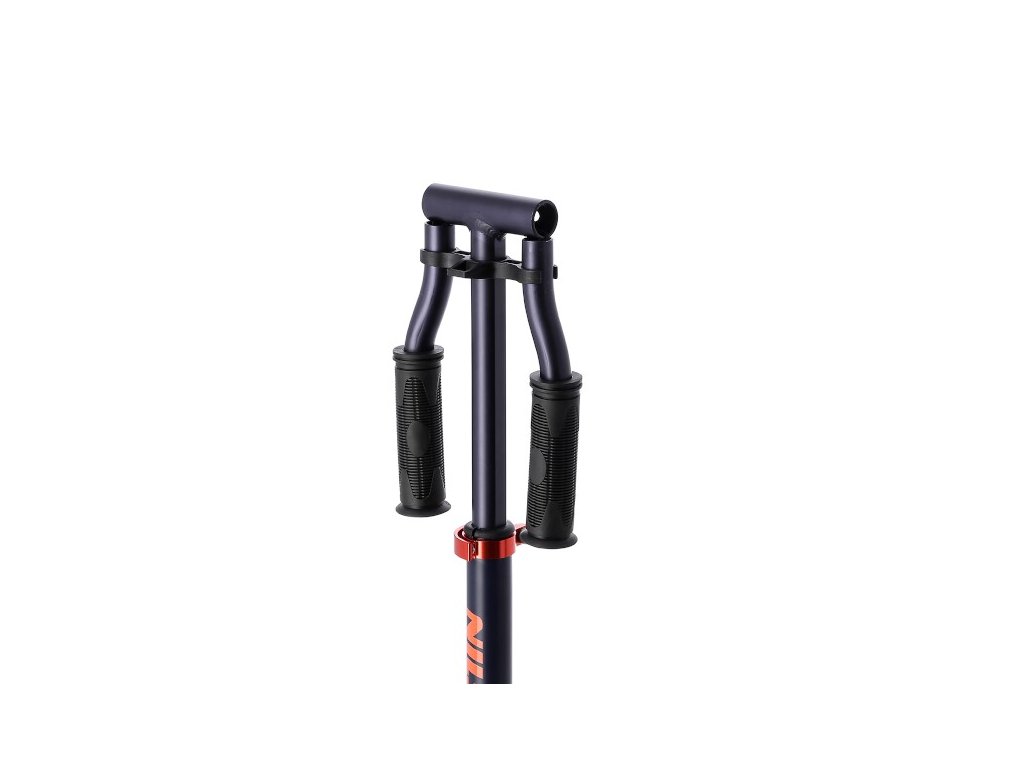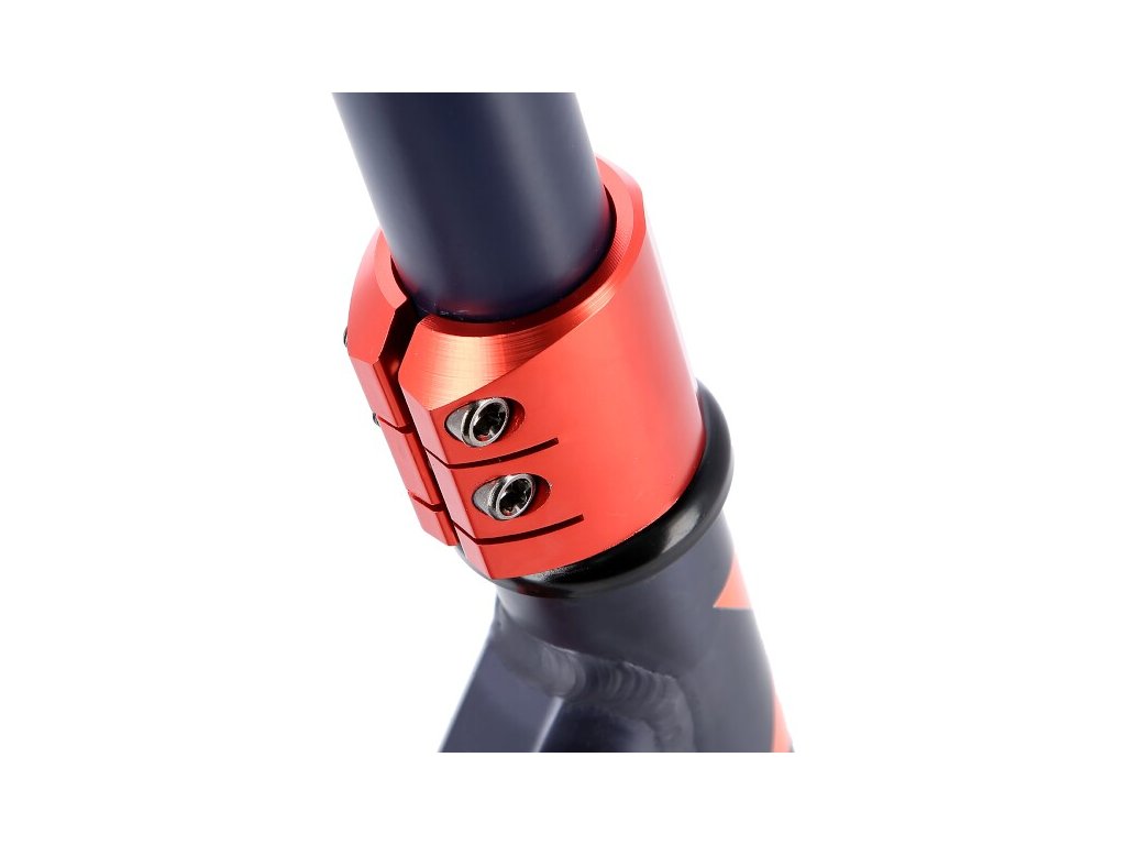Řídítka mají šířku 46 centimetrů a rukojeti jsou opatřeny gumovými gripy, tato kombinace zaručuje pohodlný úchyt a jistotu v řízení i při vysokých rychlostech, kterých HD145 dosahuje díky polyuretanovým kolečkům o průměru 145 mm a ložiskům ABEC 5. Kolečka jsou opatřeny blatníky, které Vás udrží v čistotě i v případě, že potřebujete projet louží, nebo Vás zastihne například dešťová přeháňka. Zadní blatník zároveň slouží jako nožní brzda, ta umožňuje rychlé zastavení a tím zvyšuje bezpečnost koloběžky.