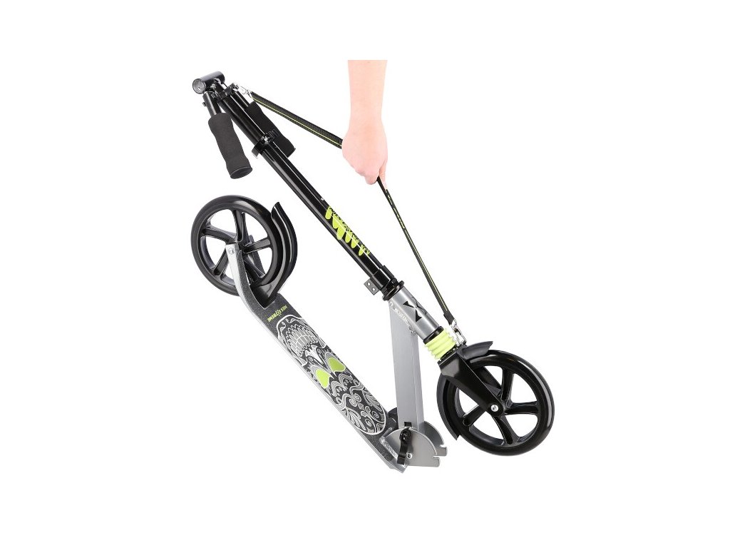 Koloběžka NILS Extreme HM210 je vhodná pro děti i dospělé. Charakteristikou modelu HM210 je tlumič na předním kole a praktický popruh přes rameno.