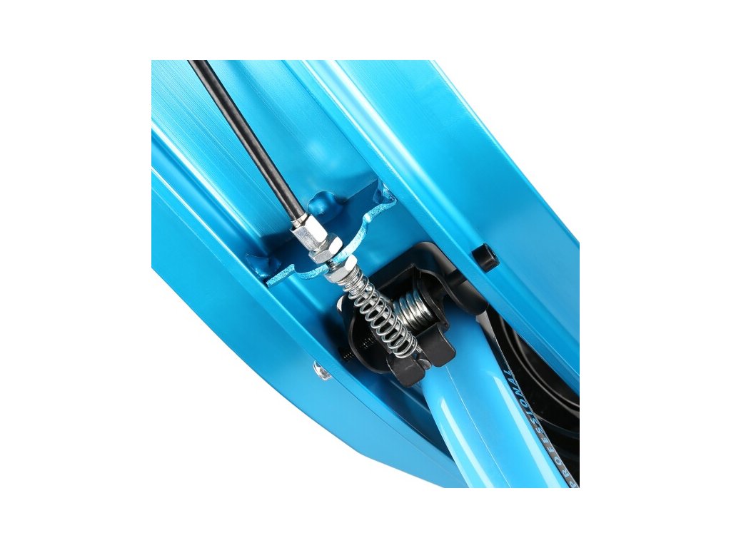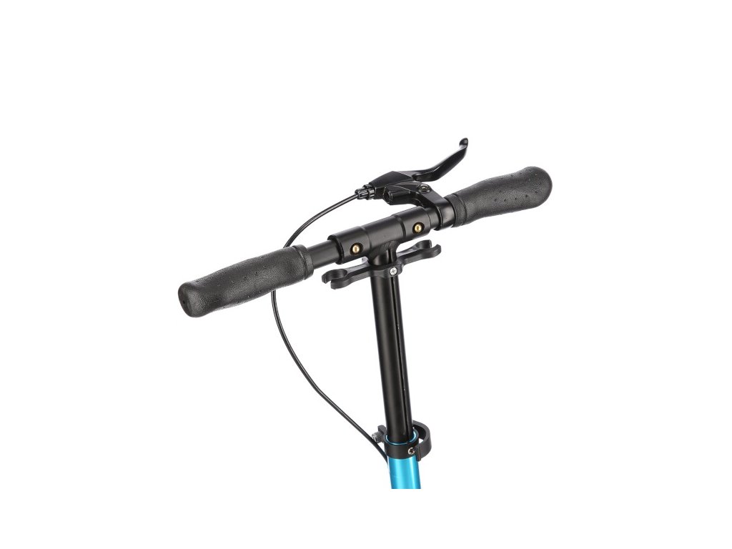 Systém odpružení předního kola zvyšuje jízdní komfort. Tlumič pohlcuje nárazy a jízda po nerovném asfaltu, nebo dlažebních kostkách je příjemnější a tižší. Zadní blatník slouží jako přítlačná brzda, která ještě podtrhuje brzdný účinek mechanické brzdy ovládané lankem z páčky na řídítkách, ty jsou opatřeny gumovými rukojeťmi, které zajišťují pevný a pohodlný úchop. Velká kola jsou osazena ložisky ABEC 7 a polyuretanovou pneumatikou o průměru 200 milimetrů. Tato kombinace zajišťuje rychlou, plynulou a bezpečnou jízdu. Na sloupku řídítek má své místo držák pro odložení láhve s nápojem, který najde své využití při delších vyjížďkách. Blatník na předním kole a skládací stojánek jsou již jen pomyslnou "třešničkou na dortu", která přizpívá k maximálnímu možnému komfortu z jízdy a k celkové radosti ze samotného použivání modelu MH2140.