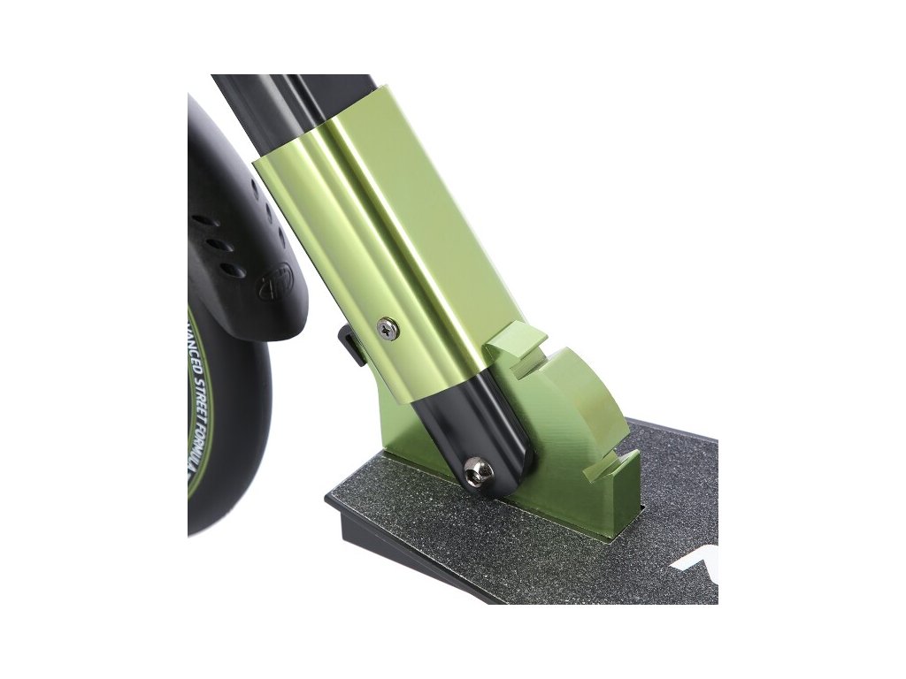 Systém odpružení předního kola zvyšuje jízdní komfort. Tlumič pohlcuje nárazy a jízda po nerovném asfaltu, nebo dlažebních kostkách je příjemnější a tižší. Robustní zadní blatník slouží jako nožní, přítlačná brzda. Široká řídítka jsou opatřena gumovými rukojeťmi, které zajišťují pevný a pohodlný úchop. 230 milimetrů velká kola jsou osazena ložisky ABEC 9. Tato kombinace zajišťuje rychlou, plynulou a bezpečnou jízdu. Blatník na předním kole a skládací stojánek jsou drobnostmi, které přizpívají k maximálnímu možnému komfortu z jízdy a k celkové radosti ze samotného použivání modelu MH235.
