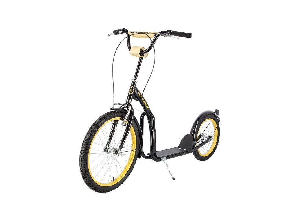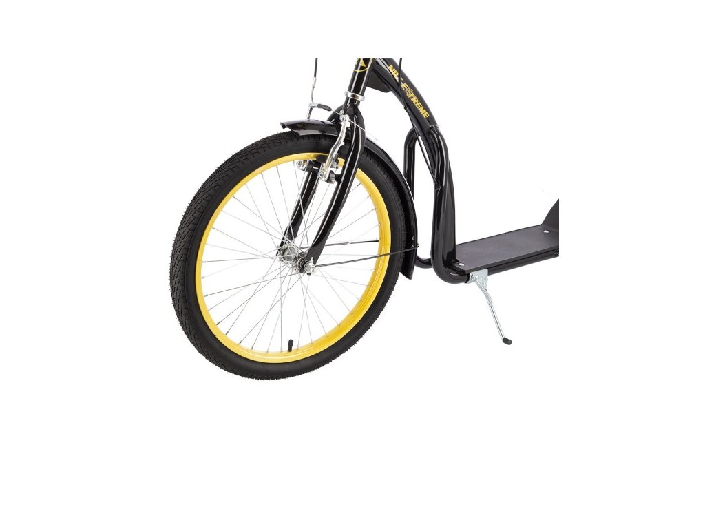 Koloběžka NILS EXTREME WH-200 je ideálním prostředkem pro zdolávání městských uliček. Model WH-200 je koloběžka se sportovním charakterem. Díky nosnosti 100 kg si ji může užívat celá rodina. Rám je vyroben z kvalitní oceli, na ráfky jsou obuty pneumatiky s duší a pro maximální bezpečnost je koloběžka vybavena ocelovými brzdami typu "V-brake". Tyto vlastnosti koloběžku přímo předurčují k použití na asfaltu, dlažbě, ale i na štěrku a nezpevněných stezkách. Integrovaný stojánek pak usnadňuje parkování koloběžky a velké přední kolo zlepšuje ovladatelnost a prostupnost terénem. WH-200 je navíc vybavena blatníky, které využijete zejména na polních cestách a nebo když Vás zastihne dešťová přeháňka.