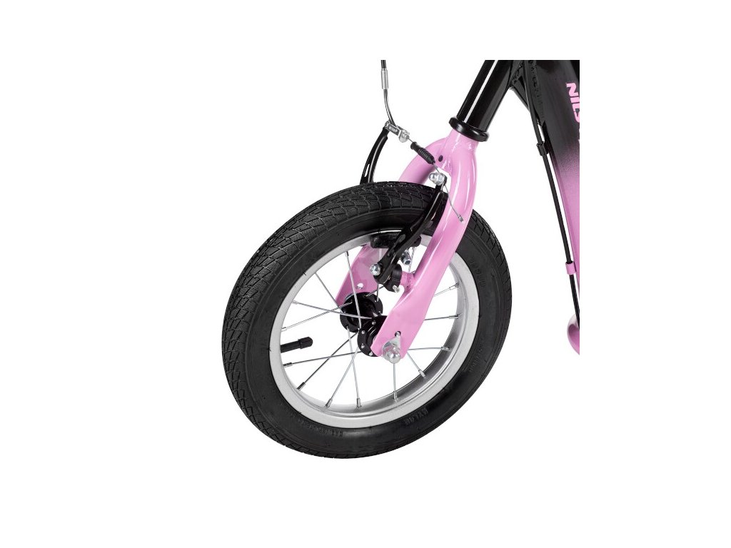 Koloběžka NILS Extreme WH113N má nosnost 80 kilogramů a je tak určená pro děti a dorost. Rám, vidlice a řídítka jsou vyrobeny z kvalitní oceli. 12", hliníkové ráfky jsou obuty pumpovanými pneumatikami, které zaručují vysoký jízdní komfort a snadné překonávání drobných nerovností. Model WH113N je tedy ideální volbou pro jízdu po asfaltových silnicích, dlážděných městských uličkách, ale i po lesních stezkách.