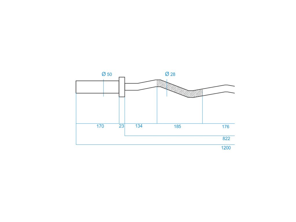 Průměr úchopové části je 28 mm a zajišťuje vysokou odolnost a pohodlí během tréninku. Použitý proces chromování hřídele je zárukou zachování jejího vzhledu po dlouhou dobu jejího používání a také je nejlepší ochranou proti korozi.