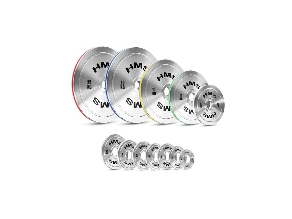 Kotouče ve variantách 5; 10; 15; 20 a 25 kilogramů mají na hraně barevný pruh odpovídající mezinárodním olympijským normám. Díky tomu lze rychle rozpoznat hmotnost závaží, což usnadňuje organizaci tréninku a dynamické změny váhy během série cviků.