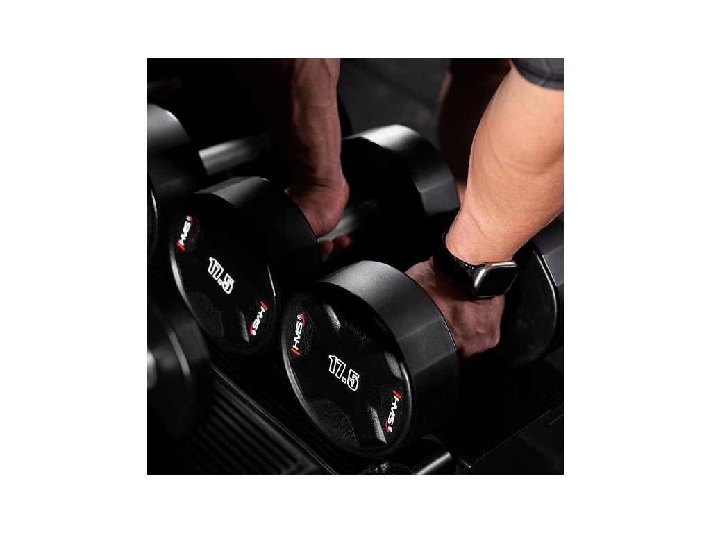 Jednoruční činky HMS HPC jsou vyrobeny z ocelového jádra potaženého litým polyuretanem (CPU). HPC jsou vybavením vytvořeným s ohledem na nejnáročnější uživatele. Výjimečná odolnost, estetické provedení a pokročilé vlastnosti z nich činí ideální volbu pro ty, kteří očekávají spolehlivost během intenzivních tréninků.