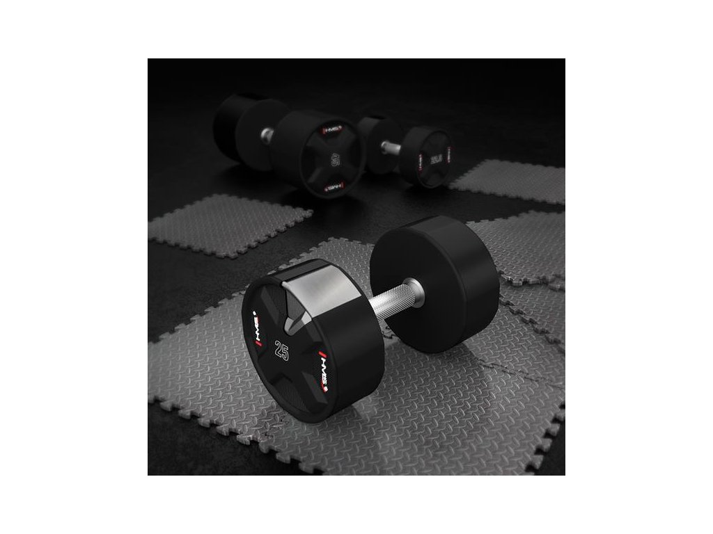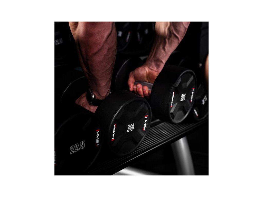 Jednoruční činky HMS HPC jsou vyrobeny z ocelového jádra potaženého litým polyuretanem (CPU). HPC jsou vybavením vytvořeným s ohledem na nejnáročnější uživatele. Výjimečná odolnost, estetické provedení a pokročilé vlastnosti z nich činí ideální volbu pro ty, kteří očekávají spolehlivost během intenzivních tréninků.