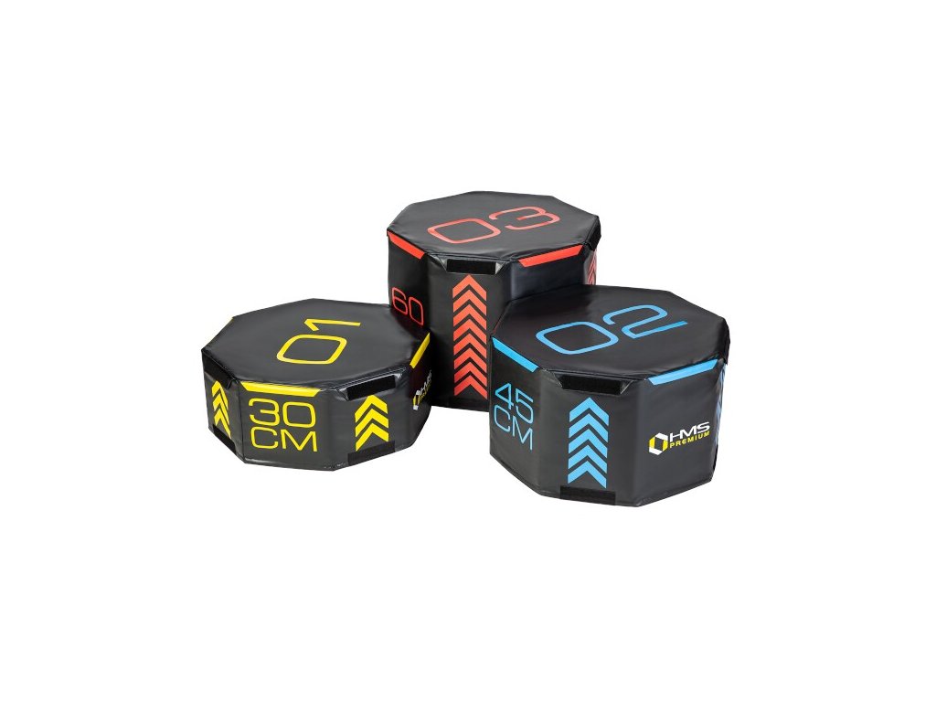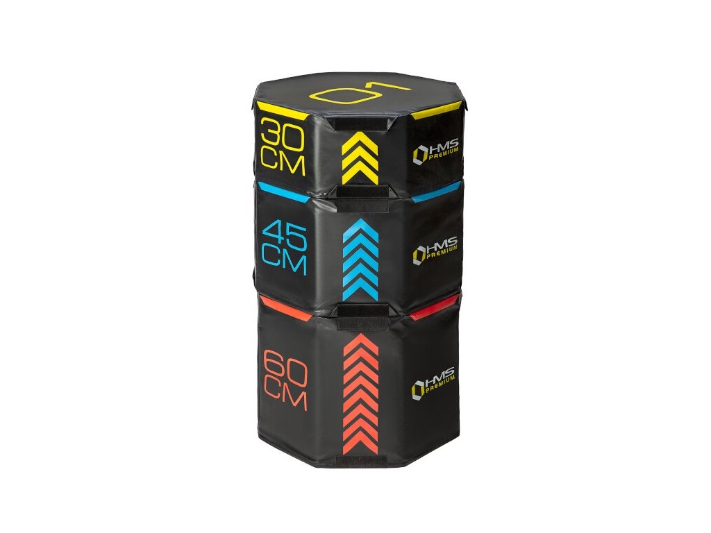 HMS Premium PYOBS01 je sada tří měkkých, osmihranných plyometrických skříní o různé výšce.