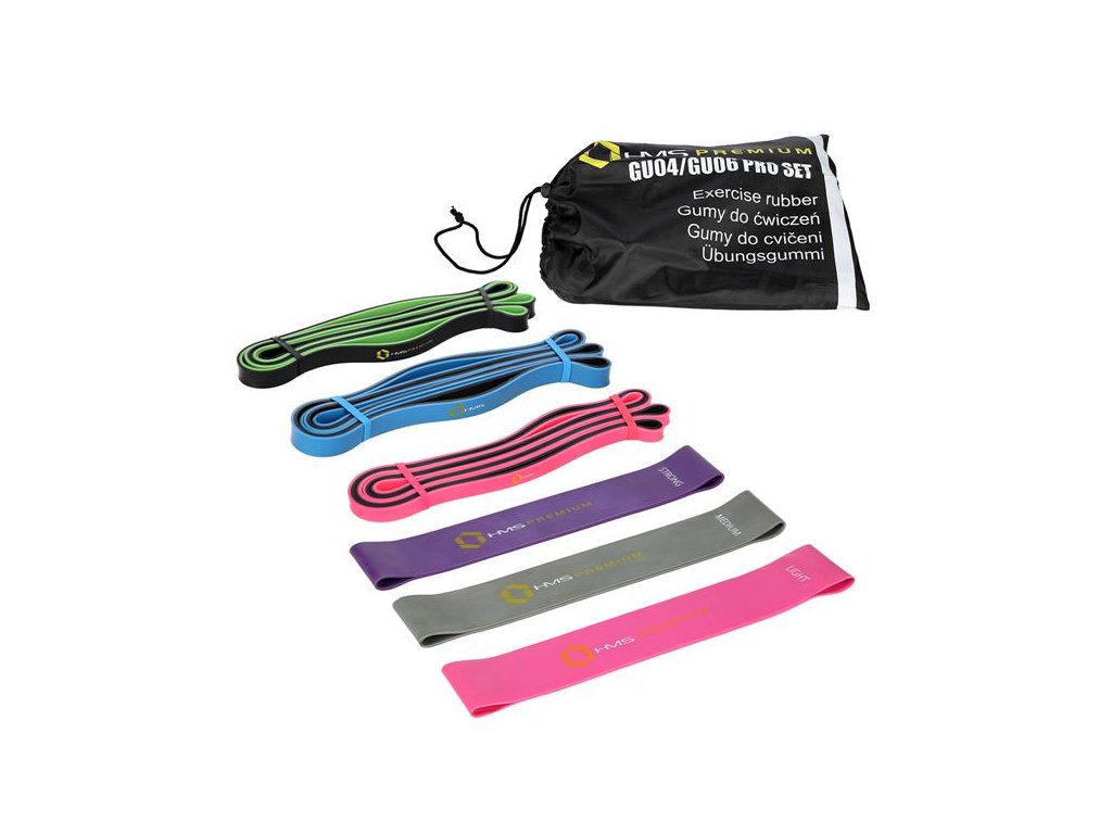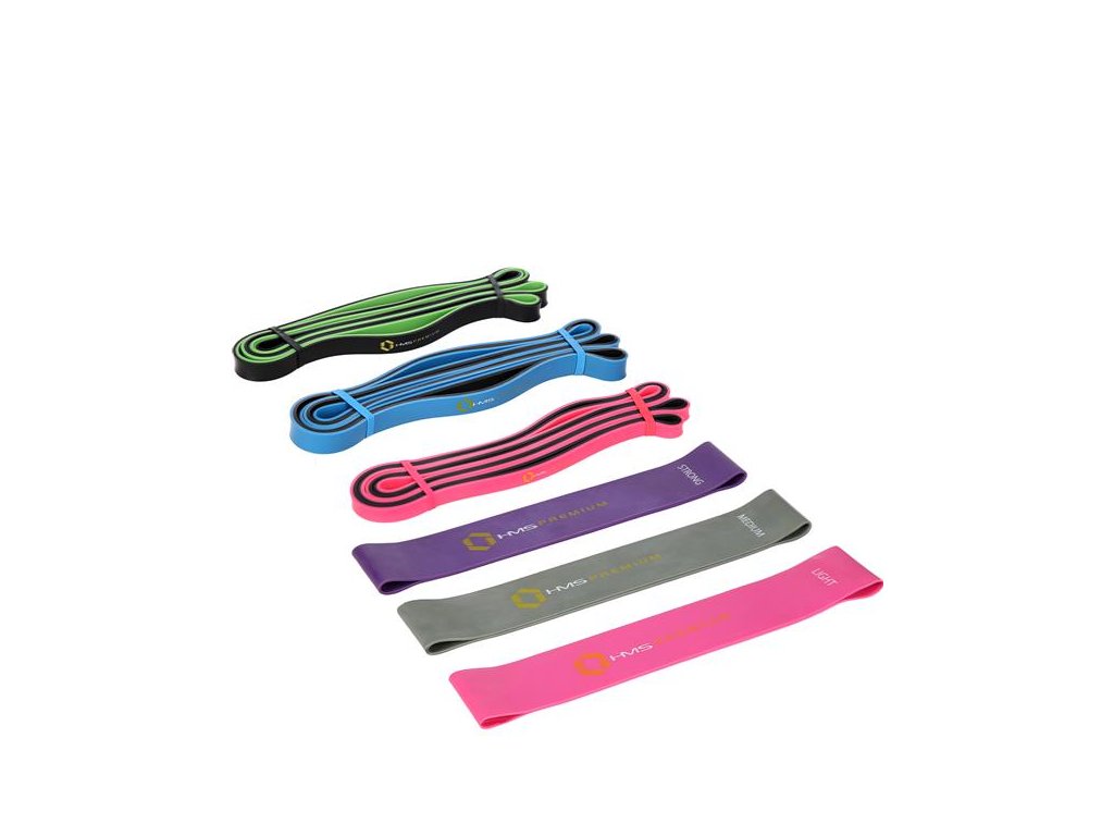 Set 3 krátkých a 3 dlouhých posilovacích gum HMS PREMIUM jež jsou využívany v silovém tréninku, kondičním tréninku, ale i v rehabilitačním cvičení. V silovém tréninku slouží jako dopomoc nebo jako dynamická zátěž. Při rehabilitaci jsou využité protože se nejedná o přímou zátěž, ale guma postupným tahem vytváří odpor a to především při úrazech svalů, šlach a kloubů.