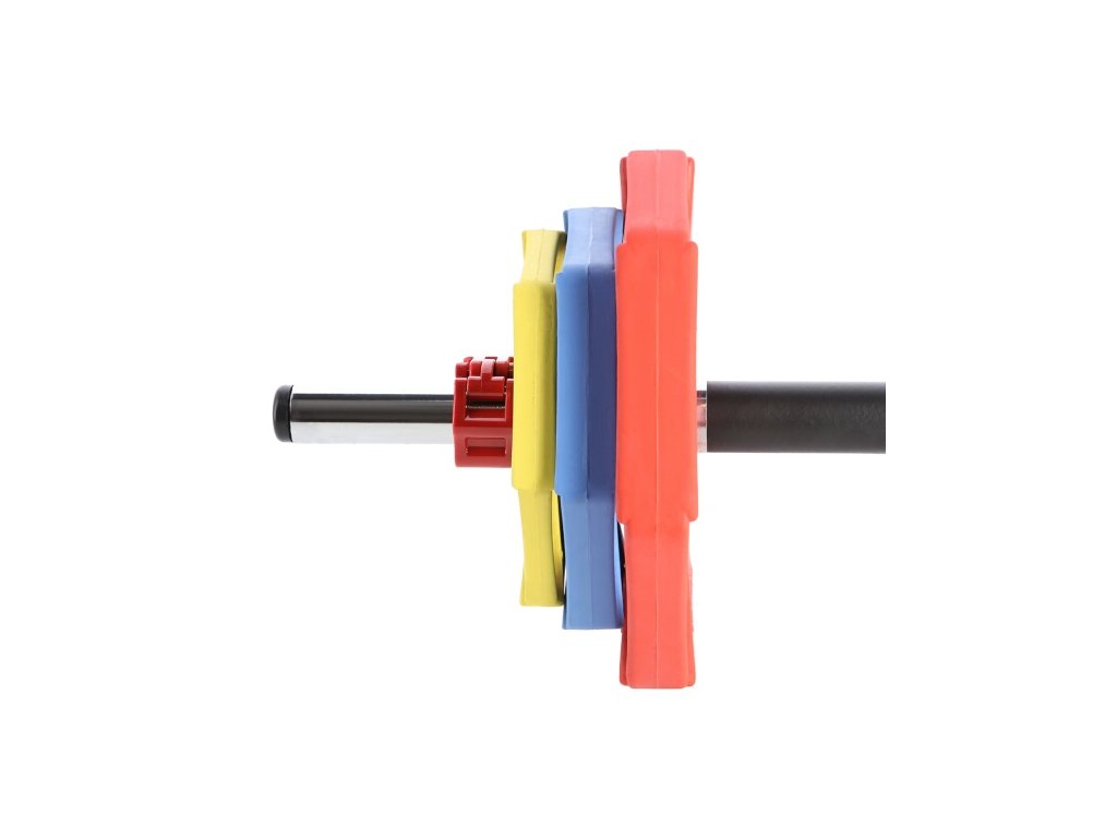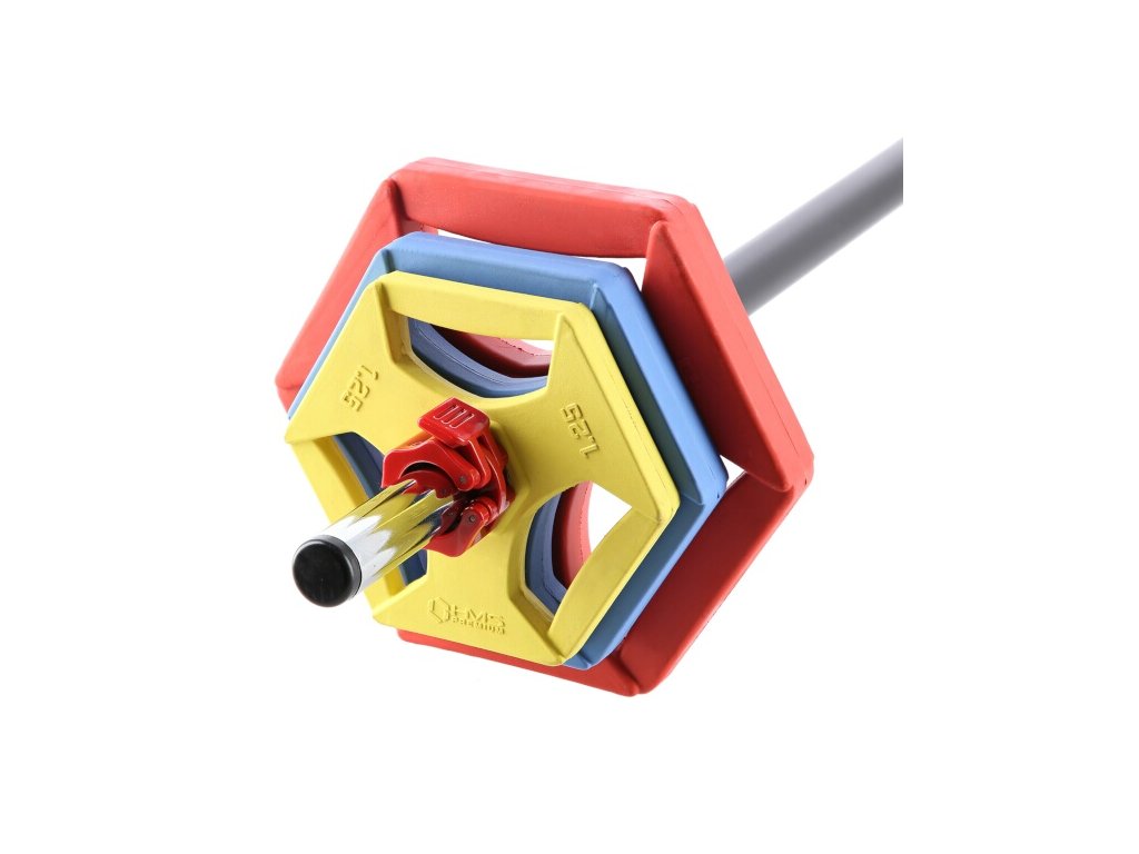 HMS Premium SBP21 je sada pro Body Pump - dynamické cvičení s nízkou váhou - a využijete ji jak při skupinovém tréninku, tak při domácím cvičení například u televize. Sadu tvoří obouruční osa, která má úchopovou část potaženu měkkou pěnou, která zajišťuje pevný úchop a odvádí pot. Sada tří párů kotoučů vyrobených z litiny pokryté vrstvou gumy, která chrání podlahu i kotouče před poškozením a 2 uzávěry pro zajištění kotoučů na ose. Samotné kotouče mají tvar šestiúhelníku, takže se činka po odložení neodvalí. Otvory v kotoučích slouží jako madla a lze je tak použít i samostatně k funkčnímu tréninku. Parametry: Materiál: litina, ocel, pryž Povrch rukojeti: protiskluzová pěna Počet uzávěrů: 2 kusy Celková délka osy: 141 cm Průměr úchopové části: 35 mm Délka úchopové části: 97 cm Průměr trnu: 30 mm Délka trnu: 20 cm Hmotnost osy: 2,5 kg Kotouče: 2 x 1,25 kg, 2 x 2,5 kg, 2 x 5 kg Celková hmotnost: 20 kg (+/- 2,5%) Upozornění: Certifikát, norma ; CE Záruka: 24 miěsícůDodatočné parametre