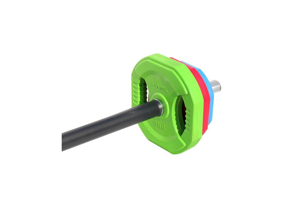 Obouruční nakládací činka SBP20 HMS, kterou ocení nejen muži ale také ženy. Činka je totiž vhodná pro cvičení typu "BODY Pump či Pump FX". Ocelová osa je potažená pěnou, která zpříjemní úchop tohoto modelu a zabrání poškození dlaní. Na stranách je činka vybavena bezpečnostními uzávěry. Parametry: Materiál: chromovaná ocel Povrch rukojeti: protiskluzová pěna Počet uzávěrů: 2 kusy Celková délka osy: 140 cm Průměr úchopové části: 35 mm Délka úchopové části: 97 cm Průměr trnu: 30 mm Délka trnu: 20 cm Hmotnost osy: 2,5 kg Materiál kotoučů: chromovaná ocel, guma Kotouče: 2 x 1,25 kg, 2 x 2,5 kg, 2 x 5 kg Upozornění: Certifikát, norma ; CE Záruka: 24 miěsícůDodatočné parametre