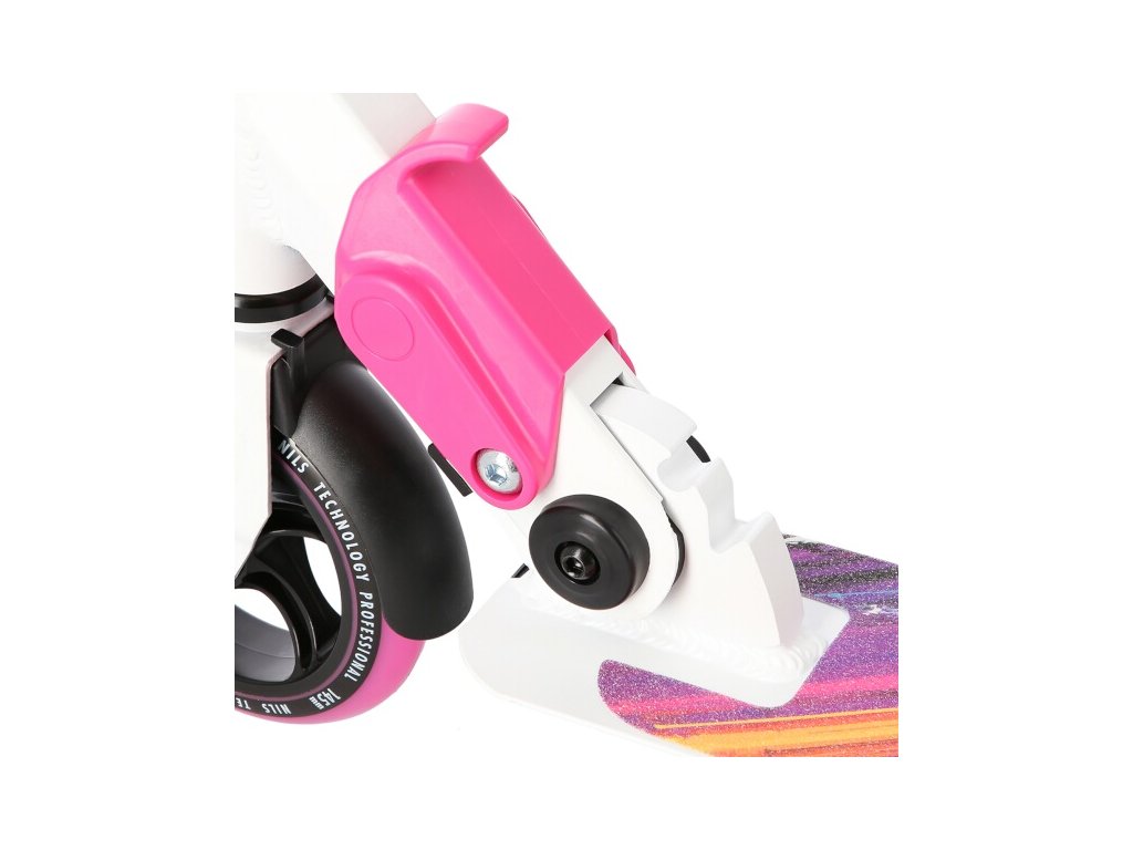 Skládací koloběžka NILS Extreme HD541 je určená především pro děti a dorost. Hlavní předností tohoto modelu jsou polyuretanová kolečka o průměru 145 milimetrů, které zaručují pohodlnou jízdu. Koloběžku lze složit, takže při uskladnění nezabírá mnoho místa a zároveň si ji můžete brát téměř kamkoliv sebou ať už jedete na výlet například vlakem a nebo pokud jedete autem na dovolenou do zahraničí. Dalšími výraznými prvky jsou protiskluzová nášlapná plocha, gumová madla a zadní přítlačná brzda. Klademe důraz především na atraktivní vzhled a kvalitní provedení, díky kterému máte jistotu, že kupujete kvalitní koloběžku jenž potěší a zároveň i ochrání. Chcete-li pro bezpečnost udělat maximum, nezapomeňte se porozhlédnout po přilbě a chráničích.