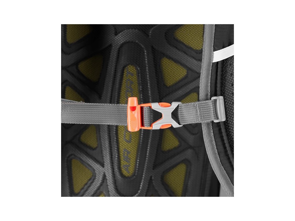 Na přezce hrudního popruhu je integrovaná záchranná píšťalka pro zvýšení bezpečnosti v případě nouze. Bederní pás nejen rovnoměrně rozkládá hmotnost, ale také stabilizuje batoh a navíc nabízí kapsy na drobnosti, jako je svačina, klíče nebo telefon.